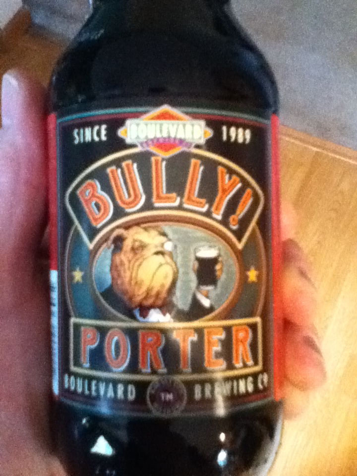photo (5)After an extremely long week Friday evening feels pretty damn good.  Groceries are bought and put away and there is beer in the freezer becoming extremely cold.  One of the local liquor stores has recently improved their craft beer selection tremendously.  I was overwhelmed at all the different varieties.  I think I started going into a panic attack once I saw twelve varieties of O’Grady’s Rotten Stein IPA and 8 varieties of Dirty Sanchez’ Holy Sock Stout.  After borrowing a paper sack from the counter and breathing into it for a couple minutes I calmed down.  I ended up with Boulevard Brewing Company’s Bully! Porter.  If you like porters, you’d love this.  Dark, complex, with a nice finish.  No “sandpaper on the tongue” roughness with this stuff.  And for $7.99 for a six-pack, you can’t beat it.