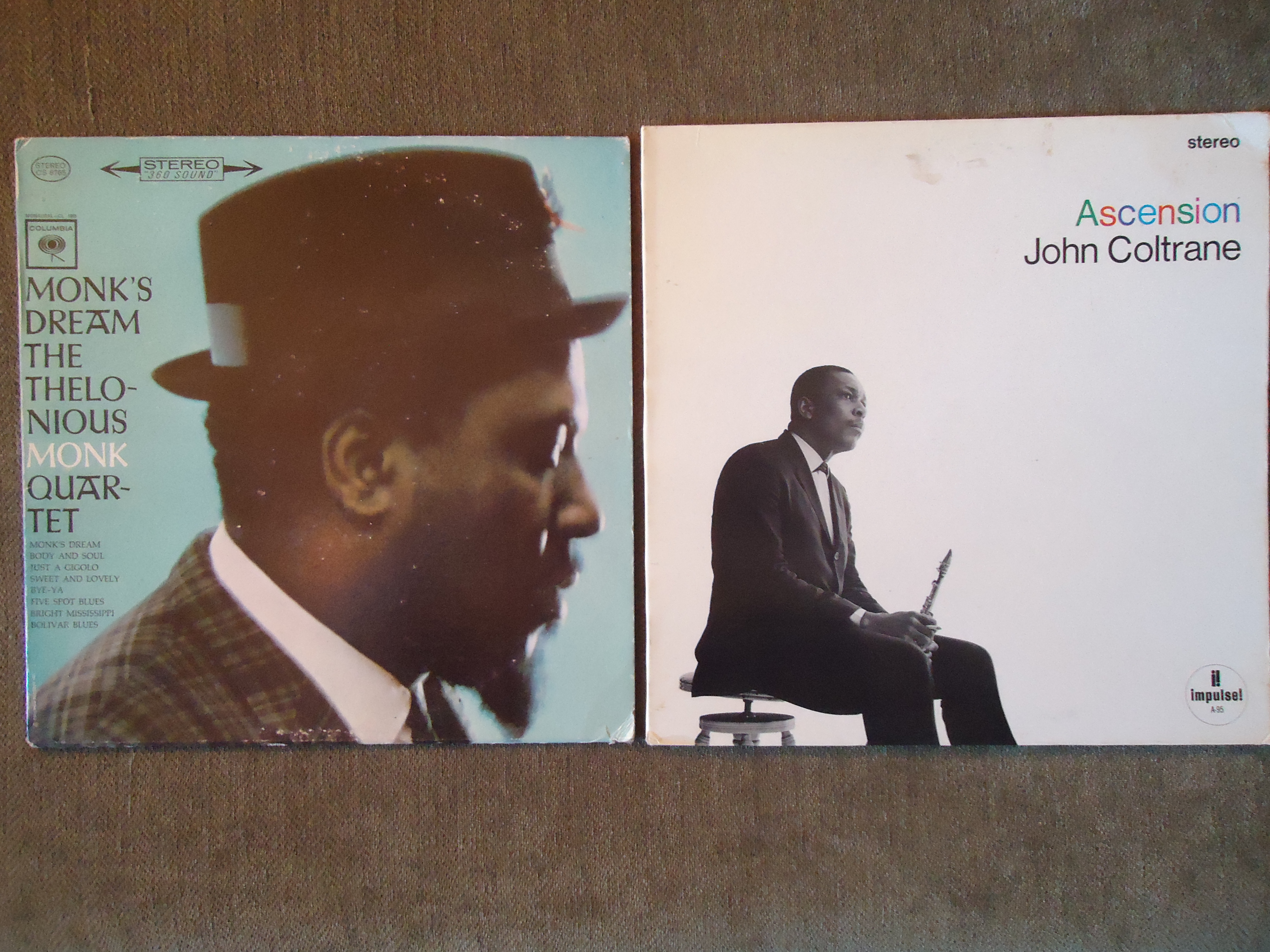 When I got home from work I saw a couple square packages waiting on the front porch. Oh boy! My recent Discogs purchases arrived! As you may or may not recall, I’ve been on a real jazz kick lately. I’ve been perusing back catalogs of some of my favorite guys; Davis, Coltrane, Monk, Winklehammer. So last week I located a first pressing of Thelonious Monk’s Monk’s Dream, one of my favorite Monk records. It was also the first jazz album I ever bought, back in 1995 and on CD. I also found a first pressing of John Coltrane’s Ascension. I think I got a pretty good deal on both, as the vinyl is near mint. Bonus points, kiddos.