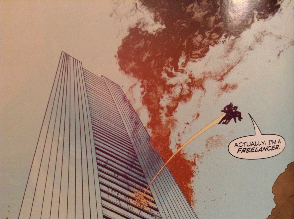 The fact that this came out in 2004, just three years after 9/11, is also very telling. Not that it’s a recurring theme, but you get a sense that Vaughan created Mitchell Hundred out of a certain feeling of helplessness. Helplessness and hopefulness. Helpless in that we were helpless in stopping those attacks and saving 3000+ lives that were lost on that day, but hopeful in seeing regular people step up during that time of horror and give of themselves. Firemen, policemen, and regular Joes and Janes that traveled far and wide to come to the big apple and help clear ground zero. Some of those folks became permanently ill from working in that cloud of soot and pulverized concrete, just to help out and give a hand. Mitchell Hundred seems to be a stand-in for the everyday people that did what they could in New York City. Hundred was a normal guy working a job until he wasn’t. He wasn’t wearing a cape and brightly colored tights. He’s a clumsy hero that sometimes makes things worse. But he’s trying anyhow.