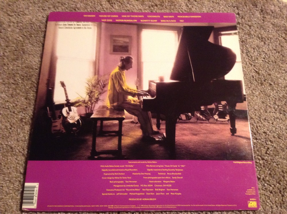 “Oh Daddy” was a top ten hit. It was a song Belew recorded with his 12 year old daughter(who sang.) It’s a sweet tune about a little girl asking her dad if he’d finally made the big time. “House Of Cards” shows Belew’s knack for writing spot-on pop songs while still being experimental and adventurous. “One Of Those Days” sounds like a lost Harry Nilsson track with its upbeat shuffle and piano melody. Belew talks about summertime picnics and barbecues all the while referencing God going back to sleep for a while longer behind the sun(referencing Daoism I believe.) “Bad Days” is another incredible piano led pop track, more melanchoy. A song about a troubled relationship that might’ve been about Belew and his first wife. “Motor Bungalow”, “Bumpity Bump”, and “Bird In A Box” all were these jangly pop songs that impressed a couple of 17-year old dorks. Then we came to “1967”. That song stopped us both in mid conversation. It was this acoustic-driven number that sounded like Lennon/McCartney turned inside out to reveal the inner workings of genius. It was just as much an impressionistic work of art as it was a harmonious pop song. There are moments of pure beauty and of this existential drifting where you feel as if you stumbled into someone’s dark psyche. Each time the song twists and turns into these wormholes of psychic dread Belew pulls us out with power pop harmonies and his jaunty acoustic guitar. From the first line(“Last night/I took a walk into the back of my mind/Through the trash and the warning signs”) to the last (“If you’ll excuse me I should say goodbye/I gotta go now”) I was floored. Me talking about it doesn’t do it justice.