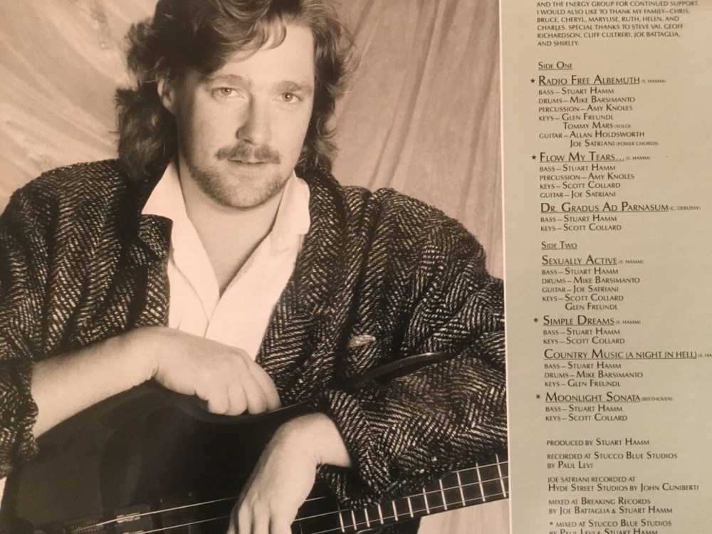 It was such a different musical world for me, and one that opened my relatively simple 15-year old brain to new ways of thinking. Like Satriani before him, and then countless instrumental records I’d buy afterwards thru Relativity Records, Shrapnel Records, and even a slew of Andres Segovia CDs a couple years later, the wordless world of instrumental music left a spot for me to fill in the emotional blanks myself. I wasn’t being told necessarily what to think or what that song was about, but I was given general directions through melody, movement, and mood. A song like “Simple Dreams” made my head and heart realign like nothing had before. And the baroque, melancholy approach Stuart Hamm took to reimagine Beethoven’s classic sadsack ode to loss would haunt me for years to come.