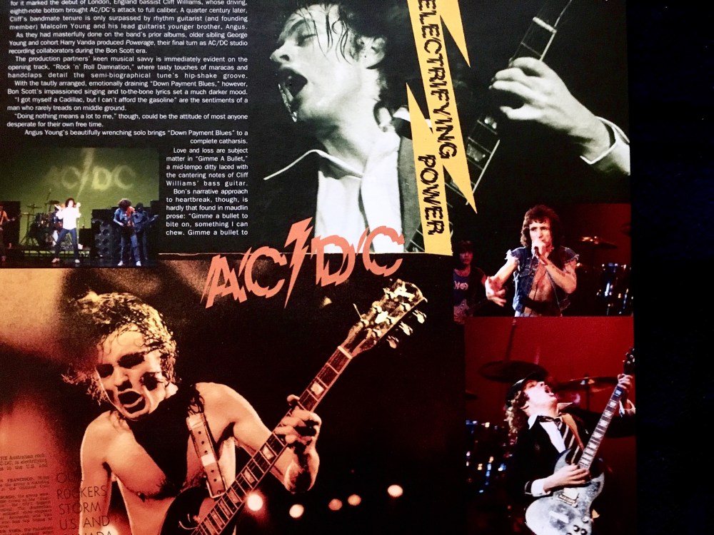 The songs? “Rock and Roll Damnation” opens things up with a gut punch. Bon Scott lays the messianic flair on thick as the band give it to us hard and heavy. You’d almost think that maybe it’d more of the same Aussie down under thunder(and really, who would be opposed to that?), but while we’re treated to the familiar things don’t stay that way. “Down Payment Blues” rolls in like a mixture of hellfire blues and that seedy drug connection you run into at a bar at 1:30 am on a Sunday morning. A .50 millionaire, baby. I think Bon Scott has never sounded better than on this track. “I got holes in my shoes, and I’m way overdue” as Angus plays a solo that sounds like it’s built on pure electrical current and the earth’s centripetal force. Pure fire. “Gimme A Bullet”? Dirty jeans strut, thru and thru. This is rock and roll for those late nights where you’ve got nothing left to lose, and not even a dime in your pocket. Gas half full in the tank, you might have enough to get to the border. Hit the pedal and see what happens.