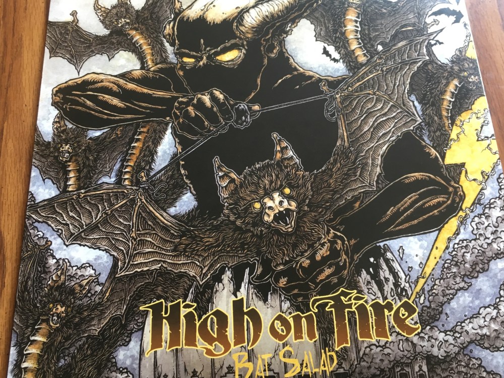 Ian and I walked amongst grabbing hands and jetting arms, getting to crates when we could. My first find was High on Fire’s 12″ single Bat Salad. It’s three unreleased tracks, one of which(title track “Bat Salad”) was written by the band, while side 2 contains two covers. Pretty much anything High on Fire I’m in, so I was stoked to grab this. I was losing hope on grabbing Deadly Avenger’s Your God Is Too Small as I saw someone walking around with a copy already and thought they might’ve only gotten one in. Fortunately Ian spied another in a crate and snagged it for me. And of course Metavari’s Absurda was also on the list which I snagged as well.