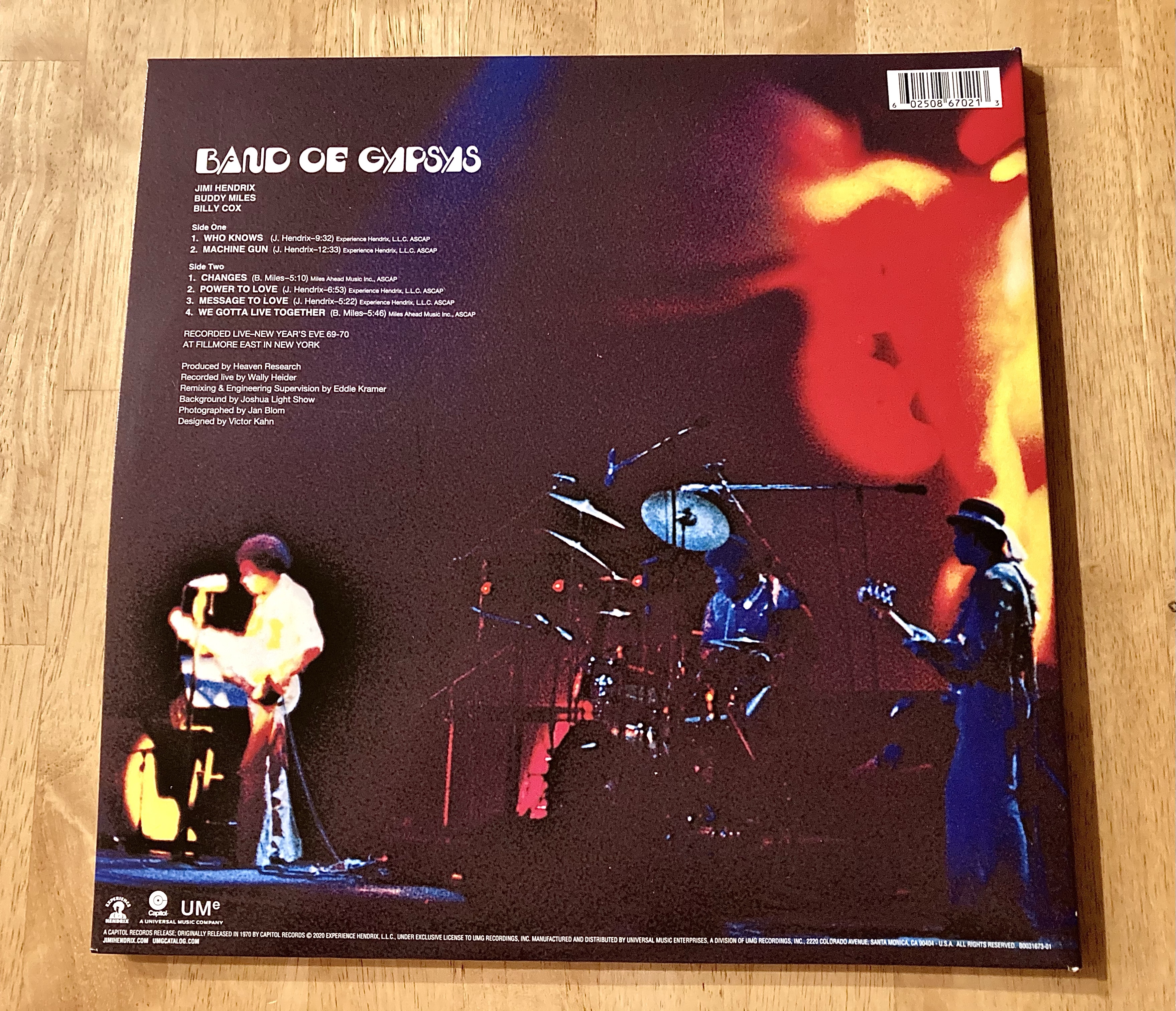 Fast forward nearly 30 years and I’m going into a wicked Jimi Hendrix resurgence. In-particular, I’m really digging into live Hendrix. Woodstock, Monterey, Live in Maui, I can’t get enough of Hendrix’ live shows. There’s something about the slightly out-of-tune Strat, the looseness, and Hendrix eating up the stage with his charm and ease on the guitar that I was sorely needing in my life. I found myself falling back into his studio records with the Experience in a heavy way, and his BBC Sessions are absolutely astounding. But those live albums were what my weathered soul and ears were craving. One album I hadn’t dug into though was Band of Gypsys. On a recent trip to Karma Records of Warsaw I perused the Hendrix section and lo and behold there was Band of Gypsys. I said the hell with it, snagged it and off I went.