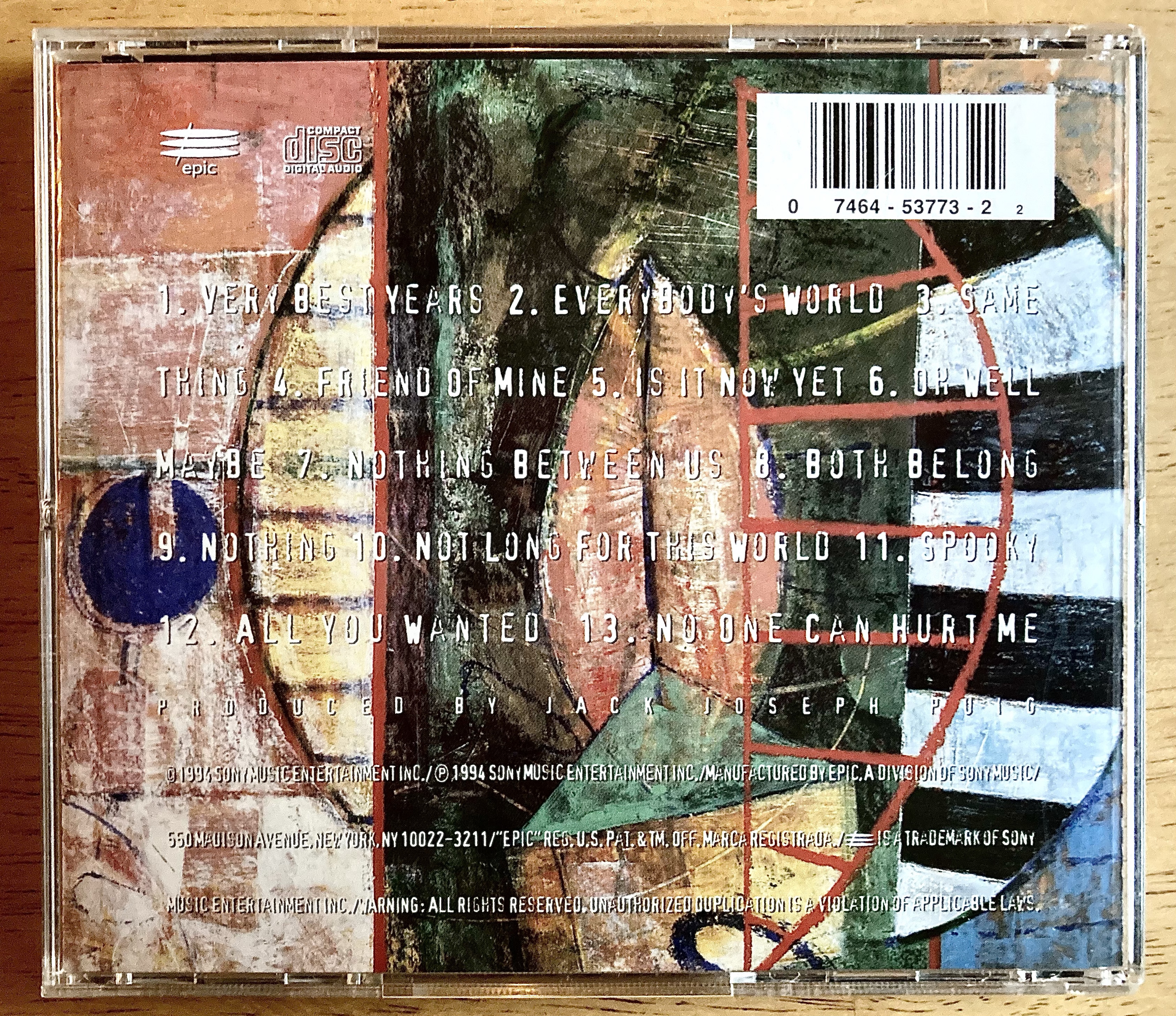 There’s not a bad song on here. It’s a damn near perfect record. “Very Best Years”, “Everybody’s World”, “Same Thing”, “Nothing Between Us”, “Spooky”, “All You Wanted”, and “No One Can Hurt Me” were classics from the get go. They feel so familiar, yet so unique and alien at the same time. “Very Best Years” had a video, which I guess got some airplay on Beavis and Butthead. I didn’t have cable so I never watched Beavis and Butthead till years later.