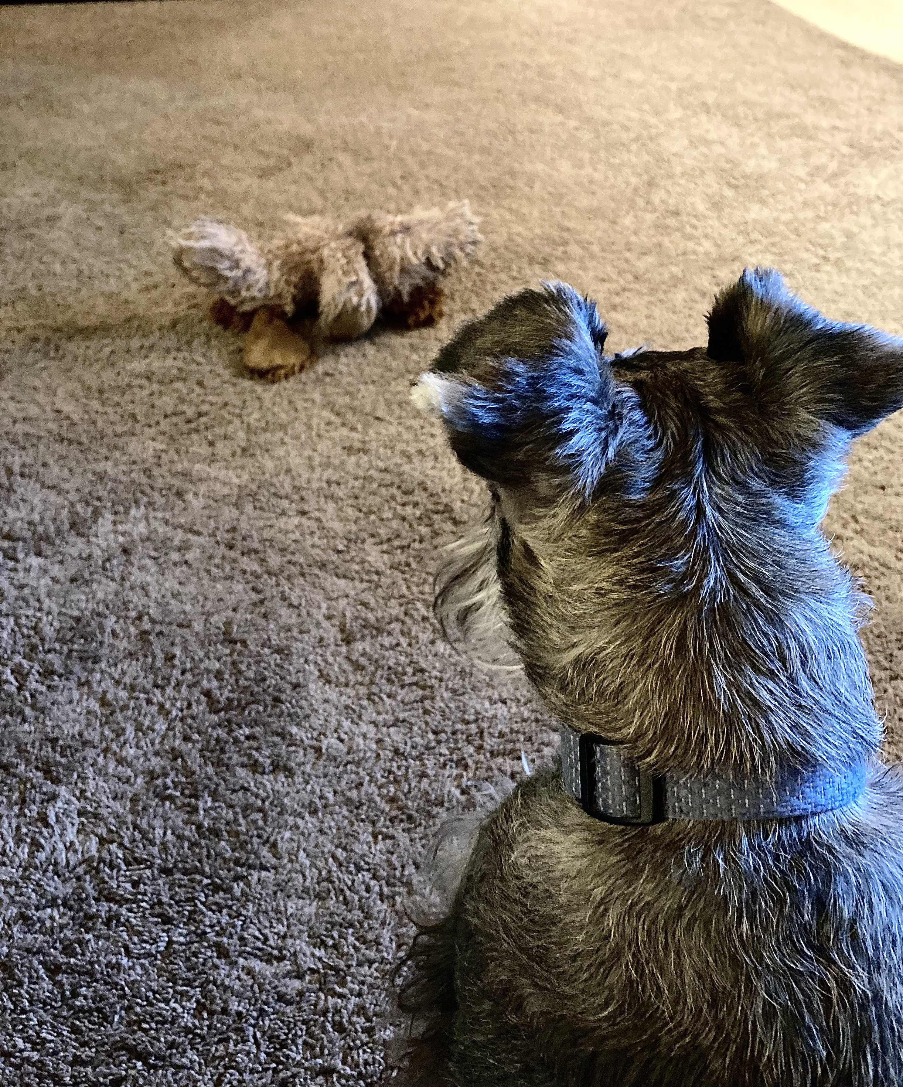 Regardless, that immediately puts me in paranoid mode. He’ll be 11 in October. Maybe there’s something serious going on. He just had his yearly check up less than two weeks ago and he was fine, so I don’t think that’s the case. Still, I spent some extra time on the floor with him, playing with his bunny, his raccoon, and his puppy toys. He happily ravaged them like a wolf in the wild snapping the neck of its prey. He did all the things he normally does. I even got his leash and we went for a walk and he dropped three healthy dumps whilst we walked in the Midwest heat.