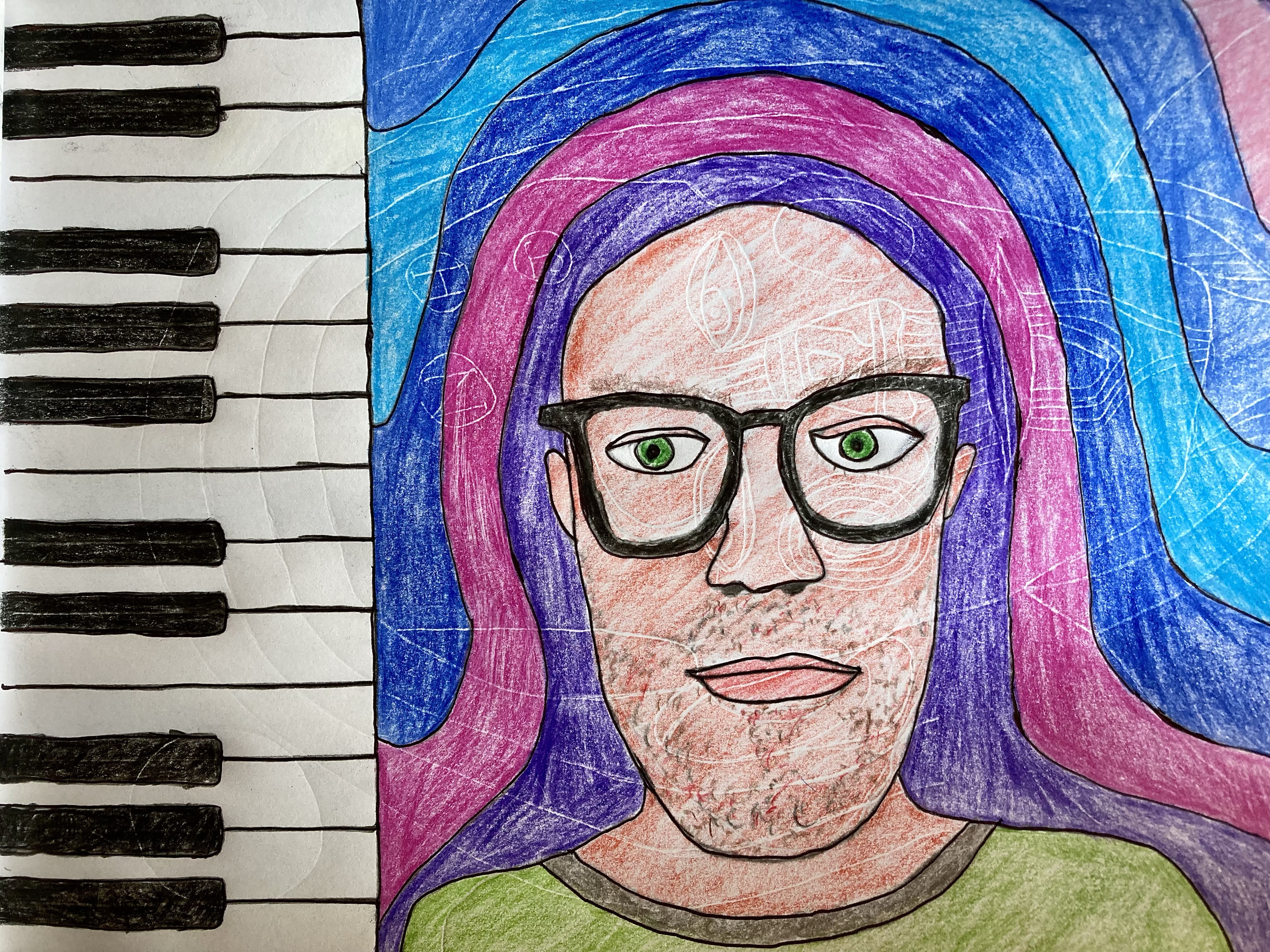 Whether I’m good at it or not, I’m going to keep doing it. One of my best and oldest friends who happens to be an amazing artist(he drew artwork for four of my albums as goodbyewave), has been a big inspiration for me, encouraging me to draw. So far I’ve done maybe five or six things, mostly just pencil, ink, and notebook paper. I recently bought a set of cheap color pencils and a sketch book. My idea is to get a decent amount finished, then pick a few to paint on canvas. I did some paintings back in 2020 while we were all down with Covid. Not great stuff, but abstract enough to make it seem like I might know what I was doing. It was therapeutic, anyways. I think painting something based on something I’ve already drawn will make the jump to paint and canvas a little easier. Maybe.