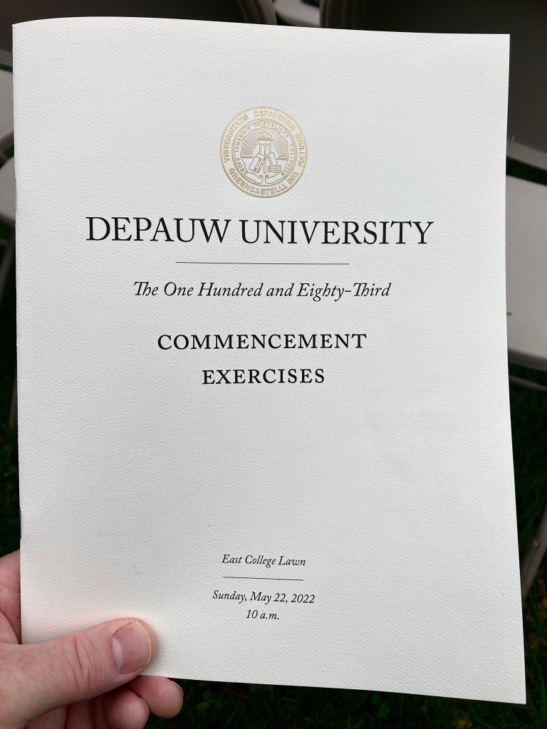 On Sunday May 22, 2022 my wife and I, along with our oldest’s significant other, sat on the lawn of the Depauw University campus and watched as our daughter graduated with a Liberal Arts degree(with concentration in English Lit) from this small school in the middle of nowhere in Central Indiana. I can’t really say what I was feeling sitting in the crowd of hundreds, waiting for the weather to cut loose a halestrom of rain and lightning(it was in the forecast.) But as if some Midwestern miracle of Meteorology, the rain stayed away, and in its place was just overcast skies and cool temps.