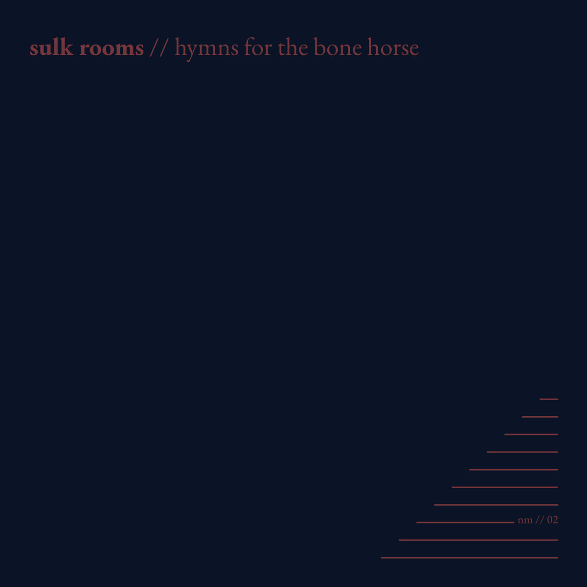 Nine songs and 40 minutes of ethereal transmissions, Hymns For the Bone Horse is Sulk Rooms answer to sensory deprivation. A deep dive into ambient drones and darkly-lit intentions. This album is like spelunking into someone’s psyche.