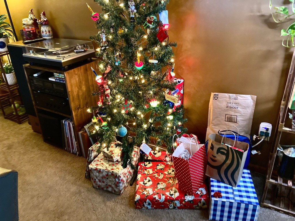 As our kids got older those gatherings just weren’t for us. Weird religious and political divides made these get-togethers uncomfortable, so we just bowed out. Besides, I preferred spending the holidays at home with our family unit, which included my parents and my brother, sister-in-law, and niece. We started our own traditions, which was mainly hanging out Christmas Eve watching movies and eating snack-y foods. Indulge in a cocktail or three and we open our Secret Santa gifts as well. Secret Santa was(and still is) a tradition, too. We’d all pull names and buy something or a few little things for $20 for that person. This is just the five of us(with someone also grabbing the dog a few things, too.) We started doing that around 2014 and it continues to today.