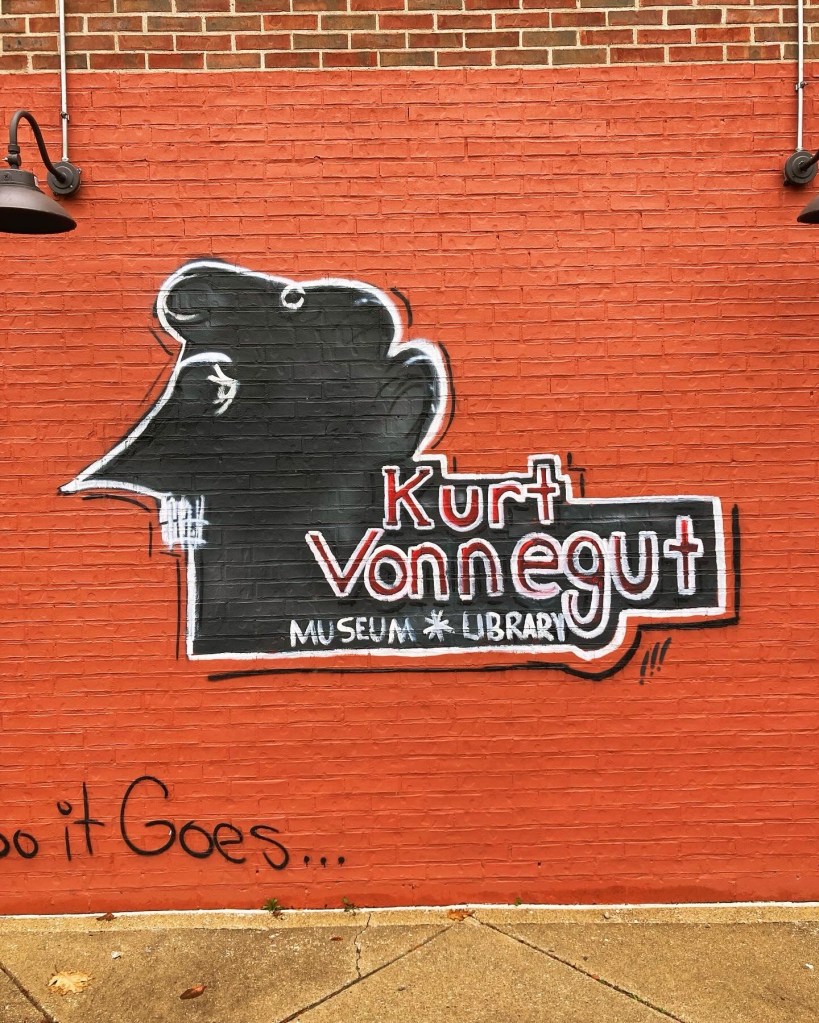 How did I celebrate an occasion like turning 50? I took Friday off and my oldest and I drove down to Indianapolis to the Kurt Vonnegut Museum and Library. Vonnegut has been a hero of mine since I first read Breakfast of Champions when I was 15. He’s the perfect amount of humor, heart, heaviness, and hope. He’s also a fellow Hoosier so that always gave me hope that I didn’t have to become a corn-shucking basketball dribbler(David Letterman did this for me as well.)