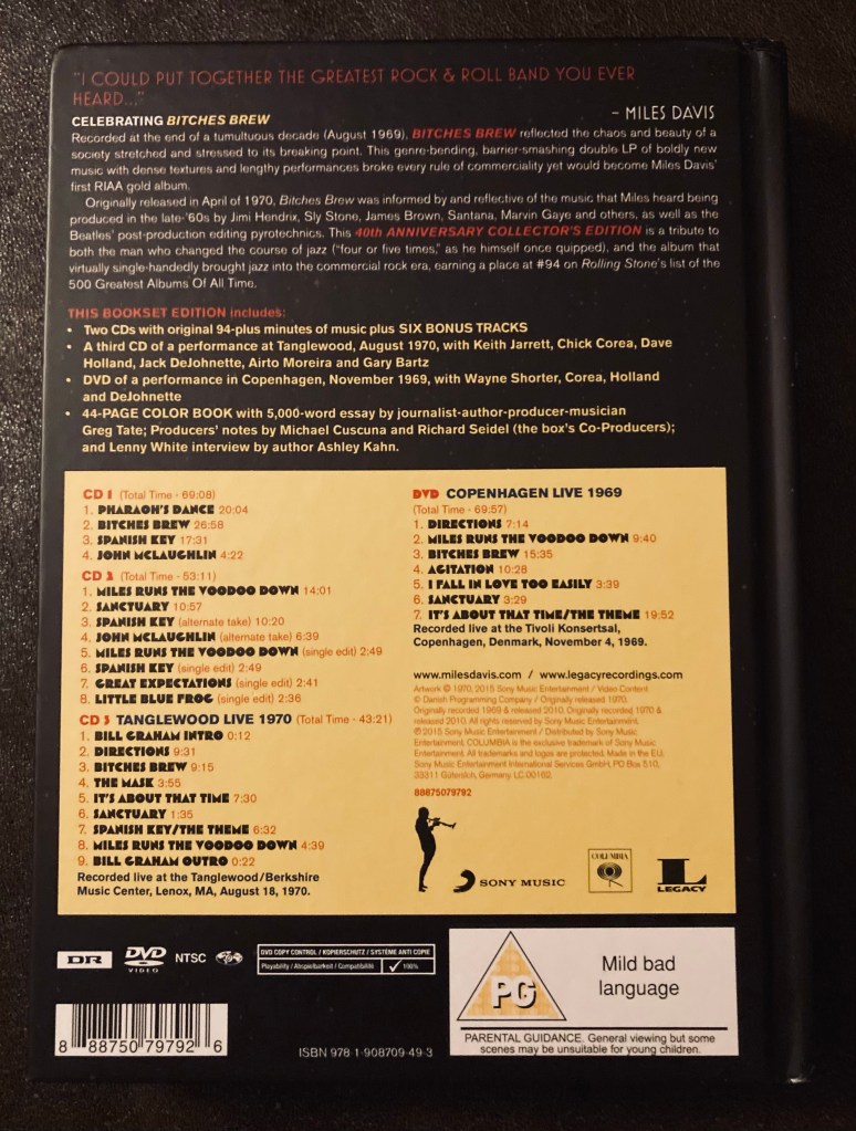 Back in the summer I bought the 40th Anniversary 3CD set of Bitches Brew. It contains the original album over 2 CDs, remastered. It also contains one CD of the album recorded live at the Tanglewood/Berkshire Music Center on August 18th, 1970(my dad’s 24th birthday). Plus, a live DVD of Miles live in Copenhagen, 1969. It’s a monumental listen, and one I’ve been spinning pretty much nonstop for the past couple of weeks. I also found a decent used copy of The Complete Bitches Brew Sessions from 1998. It’s been out of print for a long time, so I was pretty excited to find a copy that wasn’t going to break the bank.