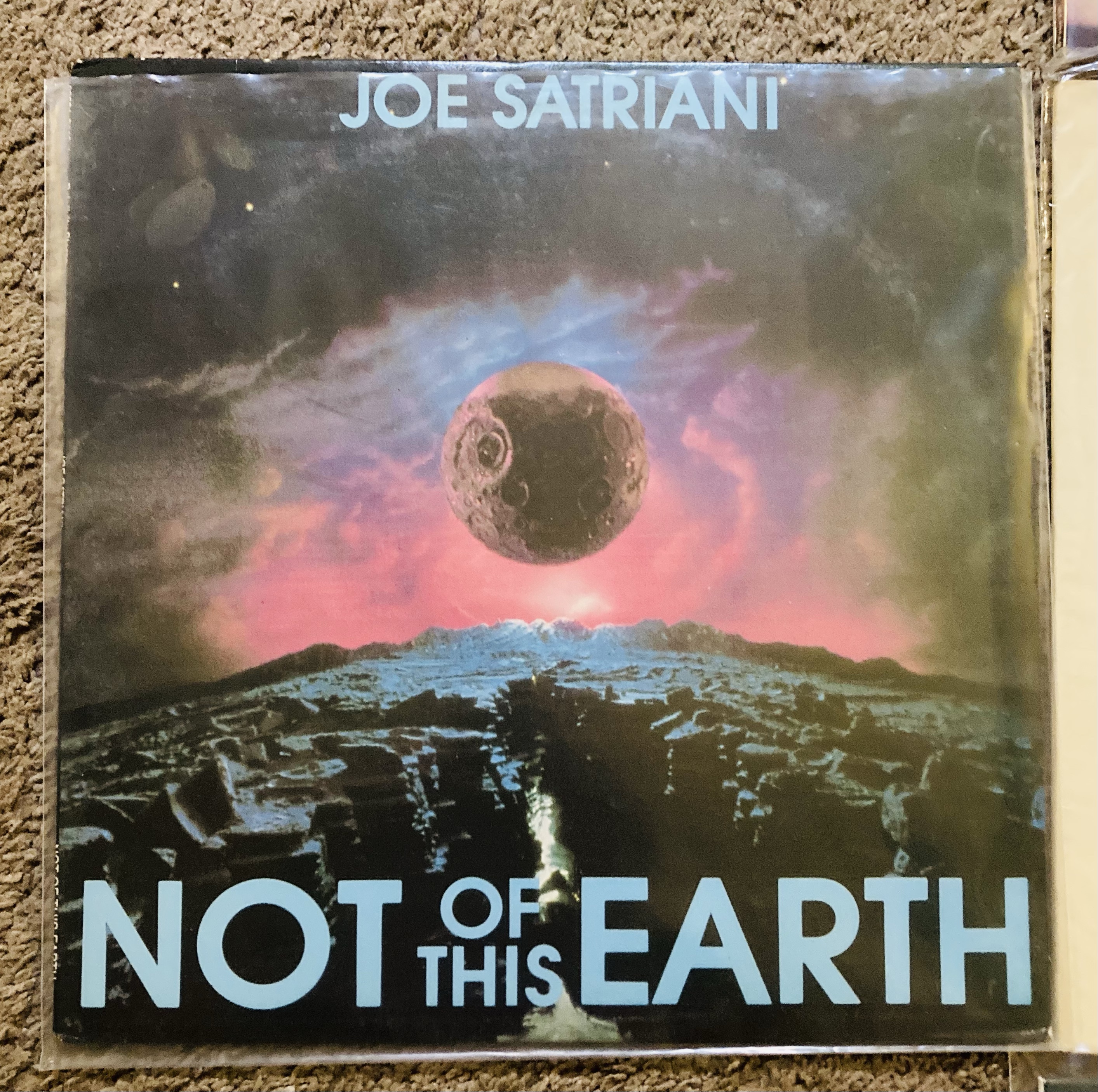 I got into Joe Satriani when I was a wee freshman in high school. I was 2 years into playing guitar and looking for new players to inspire me. I’d read about Satriani’s Surfing With The Alien in Guitar Player magazine, so when my mom bought me a cassette copy one Friday evening(along with some sweet Eastland loafers I wore the soles out of) my brain was never the same. Satch became my go-to guitar hero. Bluesy with mind-blowing dexterity and speed. I quickly began collecting what I could. On a trip to the mall I found his debut album Not Of This Earth. The title matched the music as it was really kind of out there. I was happy to own it, but man it was a little too weird for my 15-year old brain. Fast forward 30 years and I found a vinyl copy of Not Of This Earth on Discogs with original album cover. I bought it as a completist(aka OCD-lite weirdo). Turns out that album is so much better than I thought. I just wasn’t ready for it.