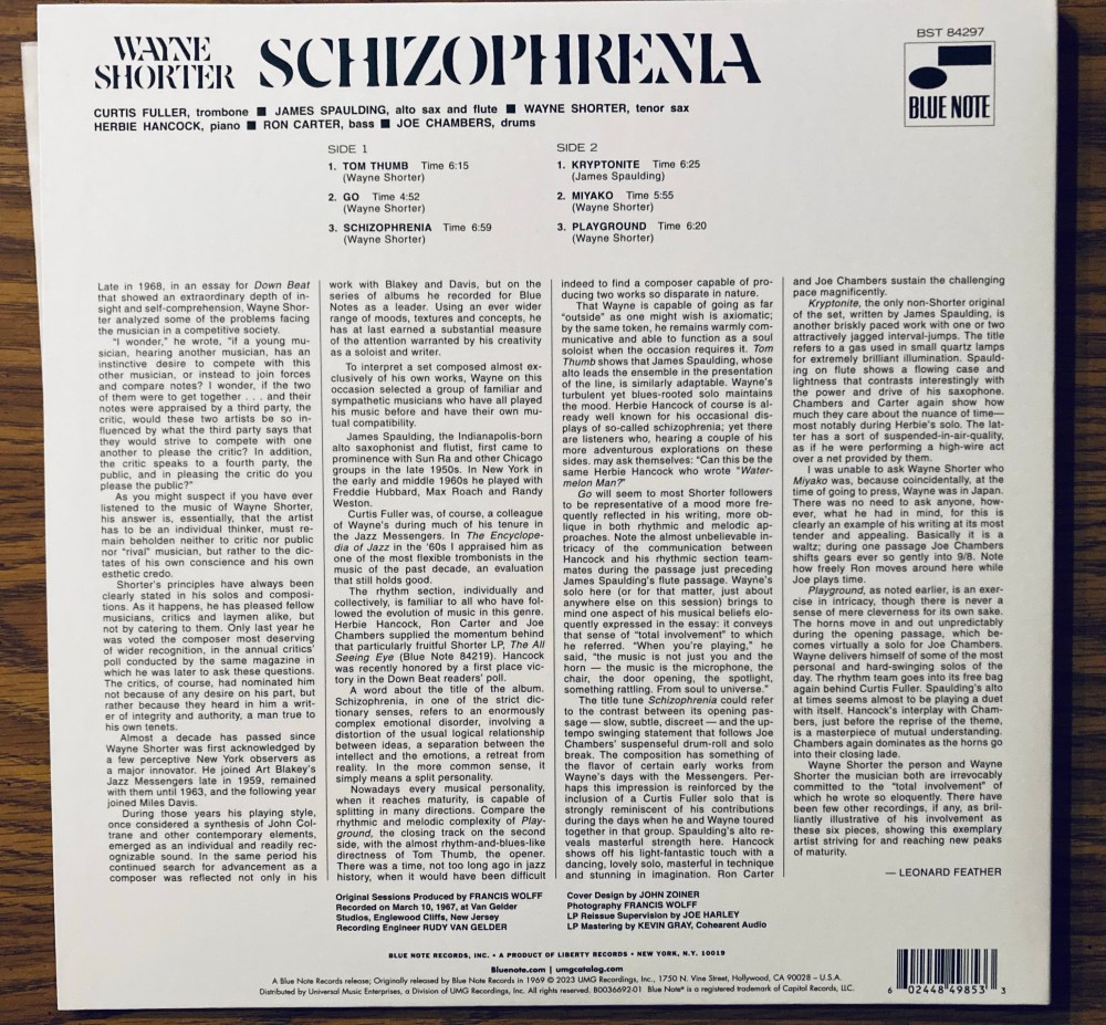 A couple months back I bought Schizophrenia on vinyl. It was part of Blue Note Records’ ‘Tone Poet’ series of releases. 180 gram vinyl, new glossy gatefold album sleeve, and a gorgeous remastering to boot. This album sounds absolutely stunning and if you’re a fan and you buy jazz on vinyl then this is a must own. If you don’t buy vinyl but dig Mr. Shorter then grab a nice remastered CD copy. Sounds great in the car or on the hi-fi.