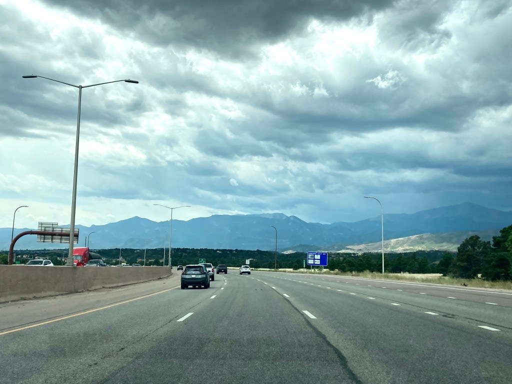 We hit the ground running despite my wife still not feeling all that well. I think what she thought was food poisoning was something else. Like a stomach bug. Either way, her stomach was still tender. I made us some eggs and toast and coffee. No coffee for her, but she did eat a bit of the eggs and toast. After a mid-morning nap we hit the road for the Garden of the Gods. Weather seemed to be cooperating, at least for the majority of our drive. By the time we reached the aforementioned Garden it was another story altogether. The sky went a charcoal grey as we pulled into the visitor center. GotG is a thing you drive through and can stop at certain spots, get out, and take pictures of yourselves standing on these monolithic boulders. Like giant teeth protruding through the earth’s jaw. It was really fun when we were there with the kids back in 2014. In 2024 as we walked around the gift shop before heading out to drive around a torrential downpour hit. Like hurricane-level winds and rain that came down sideways. The doors blew open and water poured in like crazy.