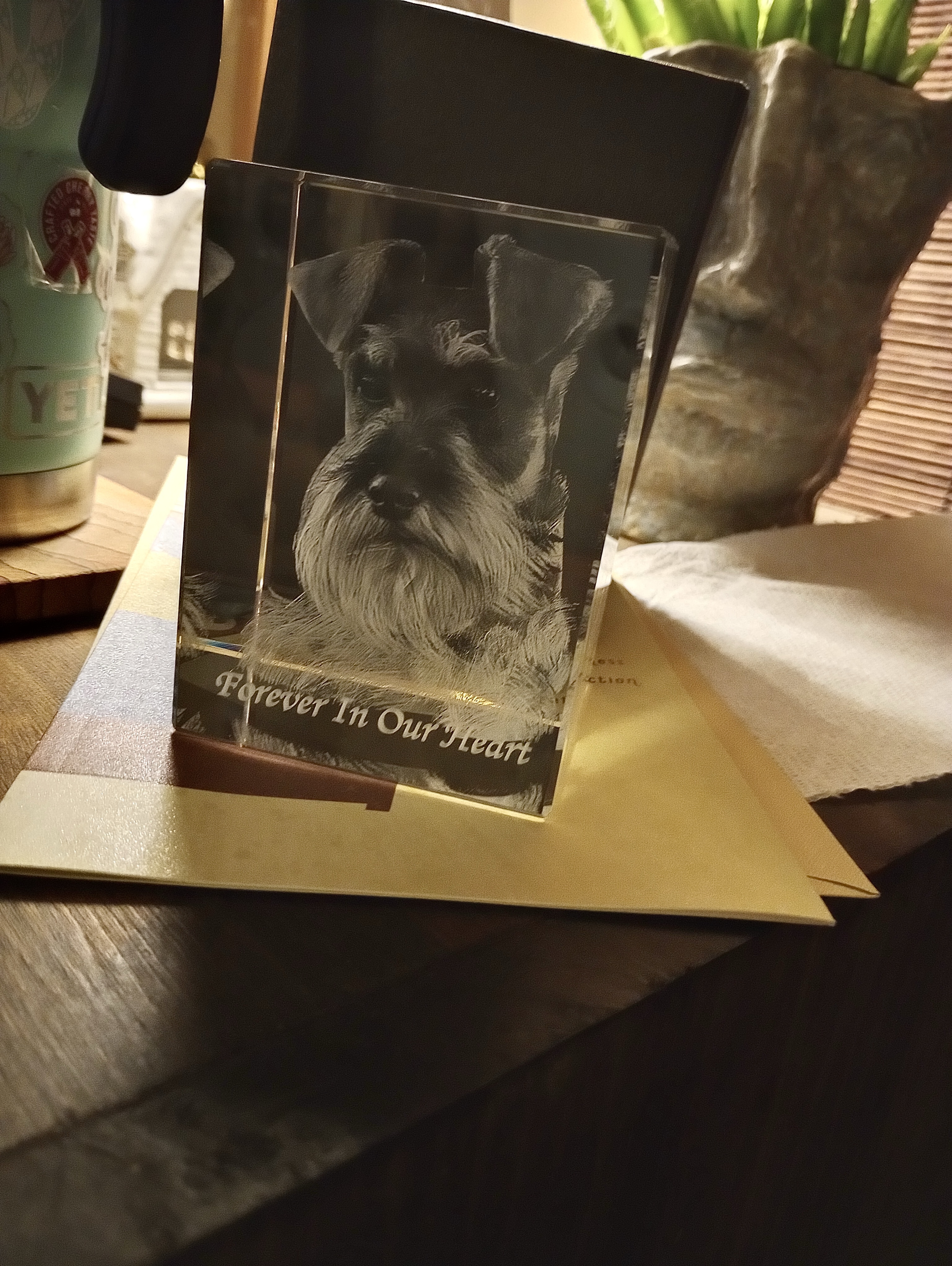 Despite all of this, something really nice did happen last night. Our son’s girlfriend gave us an early Christmas gift from her mom. It was a lovely card and this clear glass cube with an image of our boy Otto in it. I would have thought that it would make me sad, but my wife and I were so happy to see him in his prime. His full beard, the dark eyes, and fluffy hair as if he’d just gotten out of some photo shoot. It was how I wanted to remember him, not as the withered and tired old man we had to give some peace to last week. After a series shit sandwiches and kicks to the head we’ve received this year, I’m hoping that beautiful gift is the slice of contentment we’ve needed for some time.