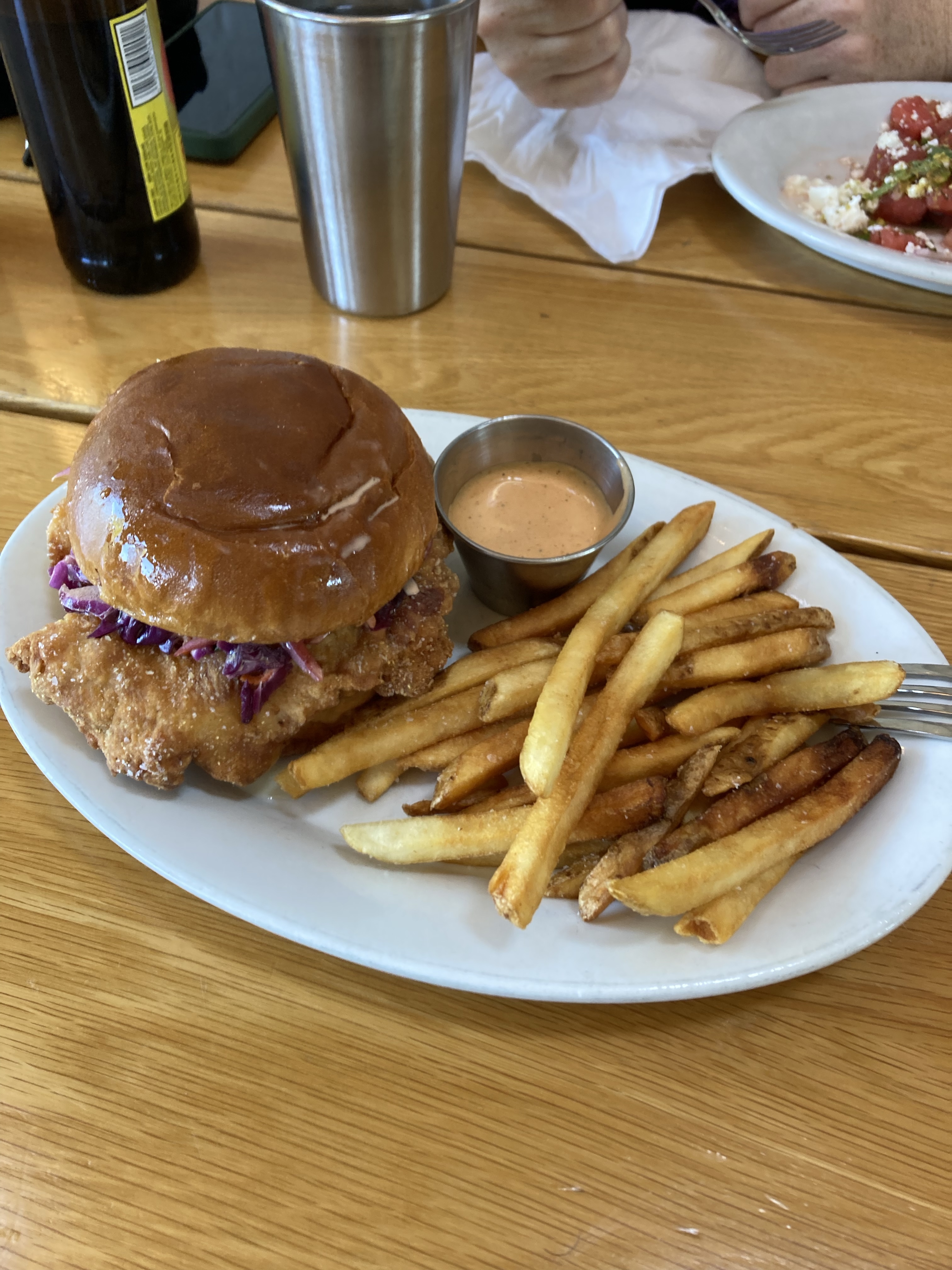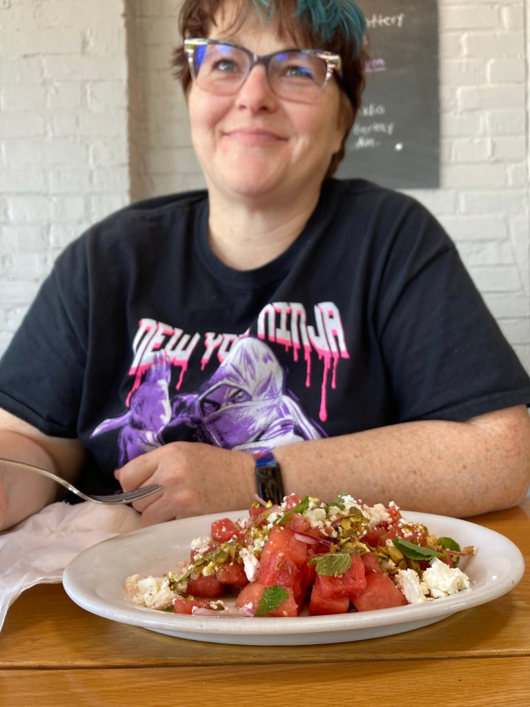 Afterwards we got lunch at Goshen Brewing. We were hoping to get their excellent bruschetta, but alas tomato season has ended at Goshen Brewing. So instead I got a chicken sandwich with fries and my wife got a watermelon and feta salad. Both were fantastic, with that watermelon salad being the big surprise. Of course we had some craft root beer and that was amazing.