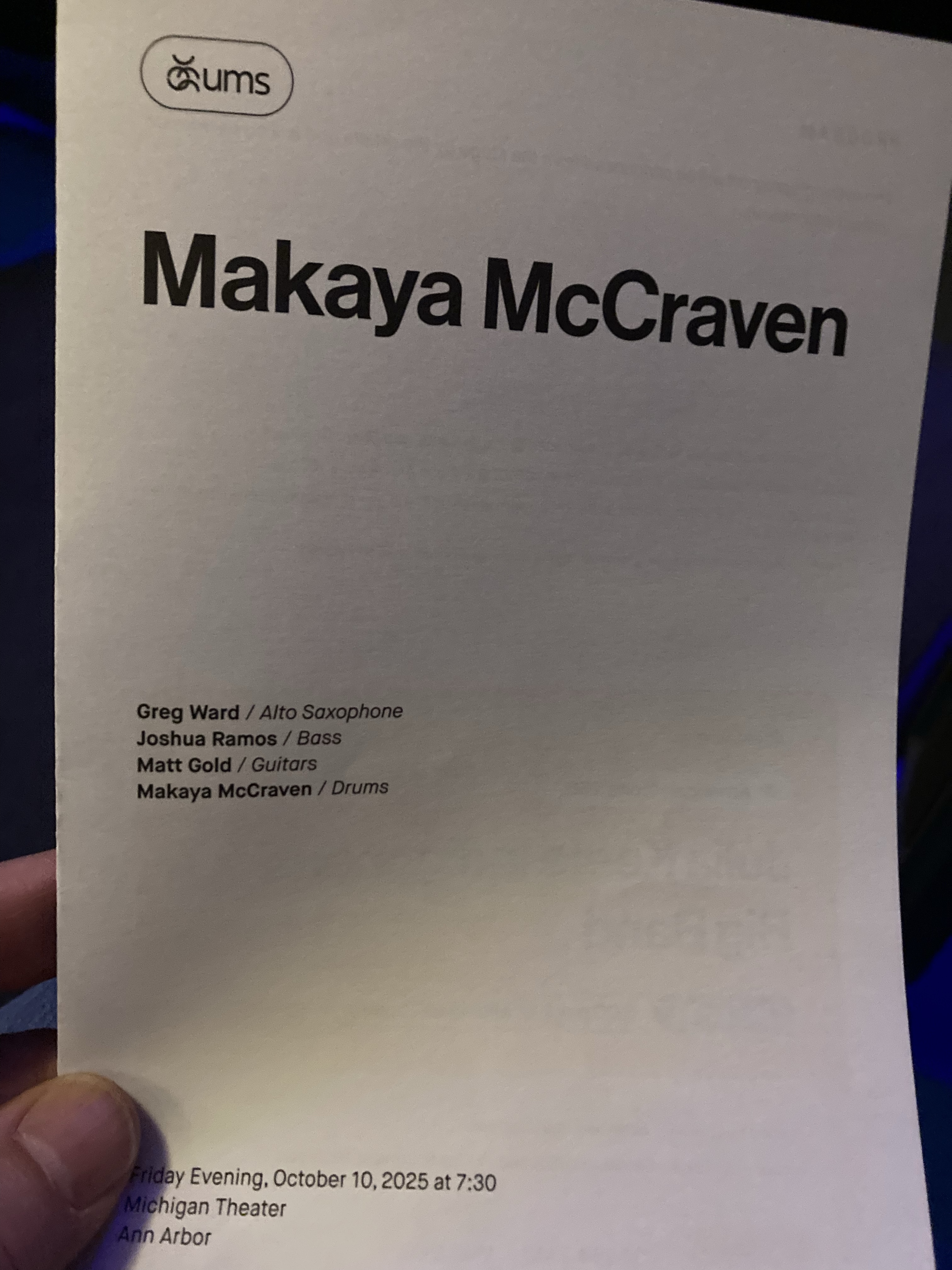 It was just a stunning performance. I found myself going from the guitarist to the bassist to the saxophonist back to McCraven, equally in awe of them all. And the forearms on McCraven and the bass player looked like they were weightlifters. Like I said, one of the best 90 minutes of live music I’ve ever seen.