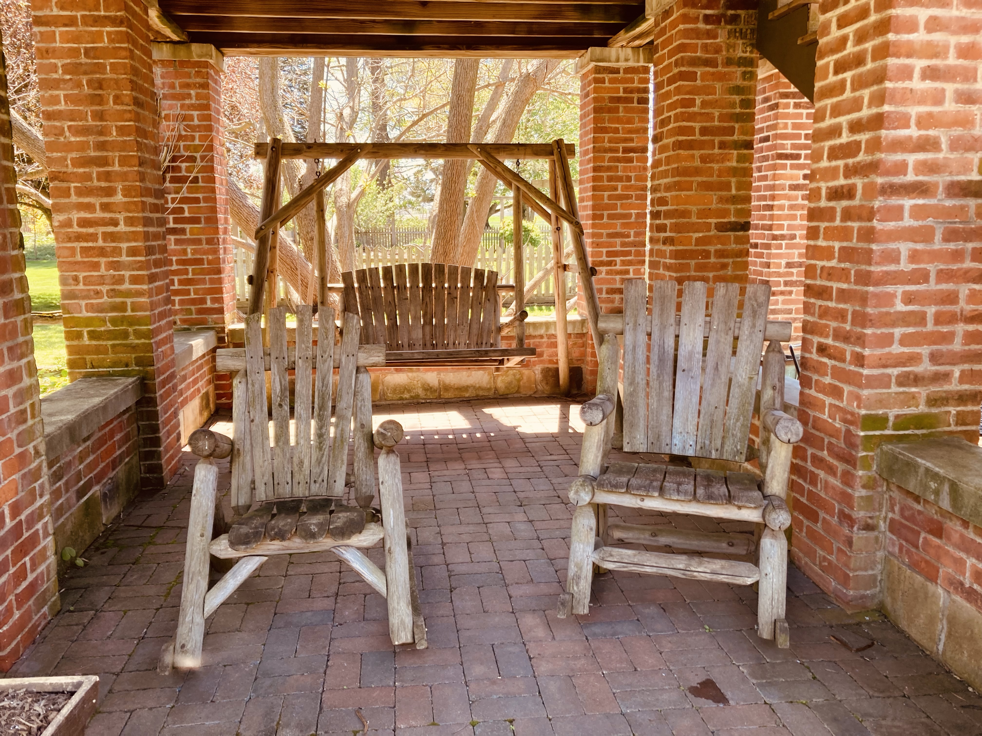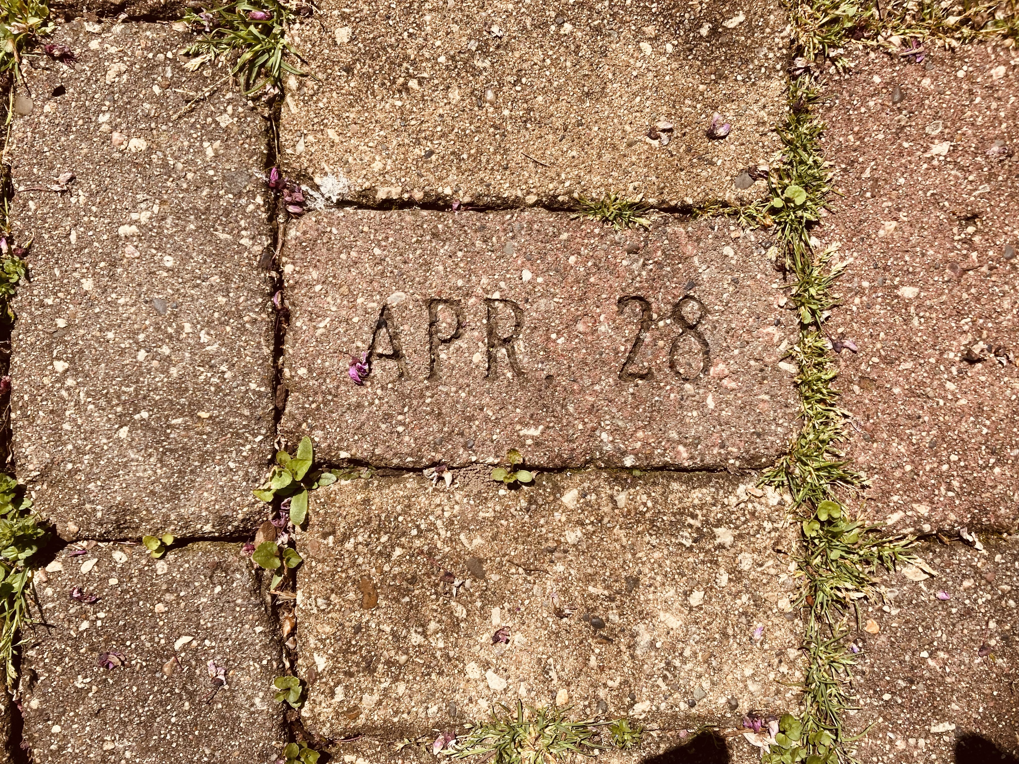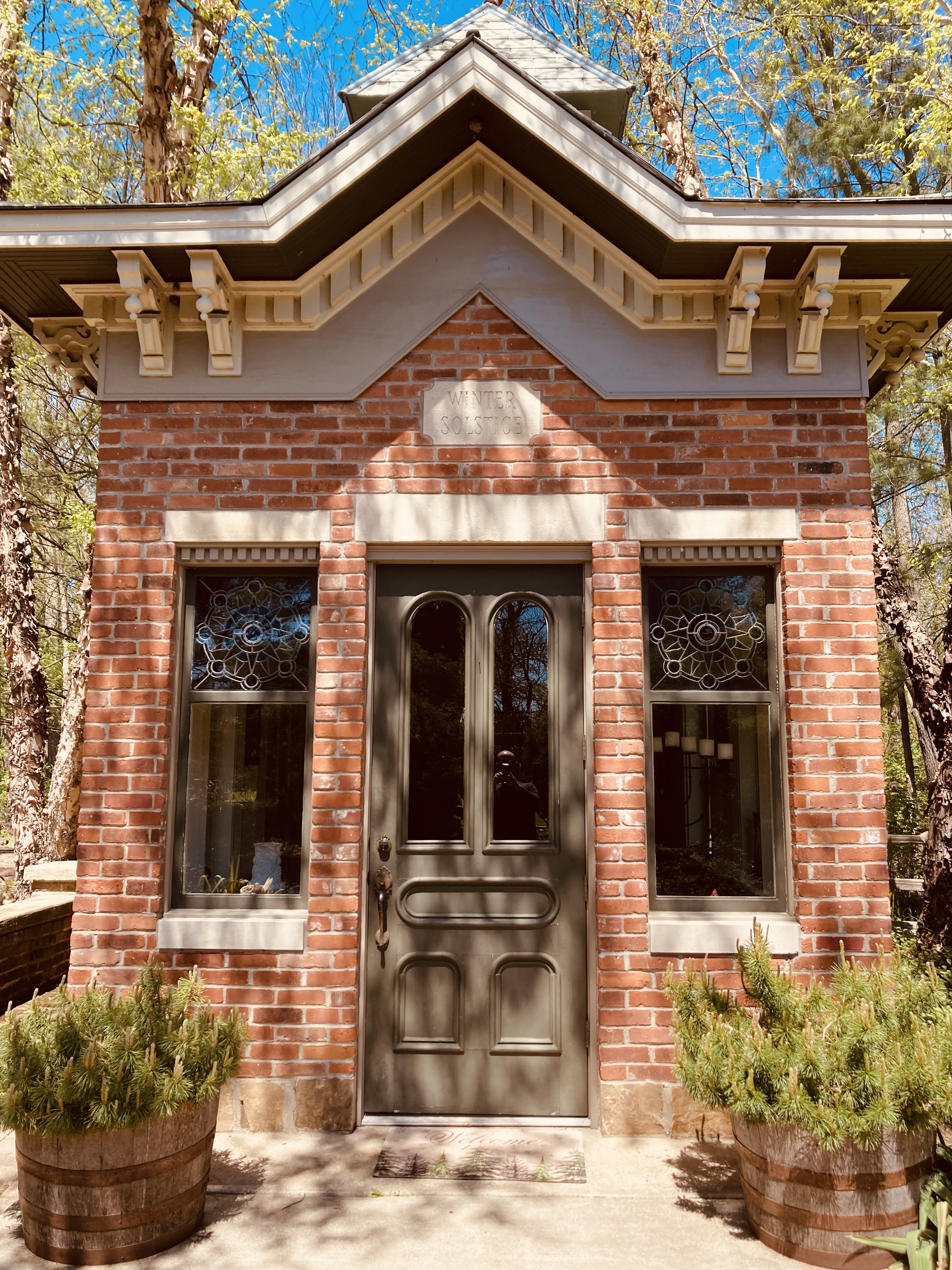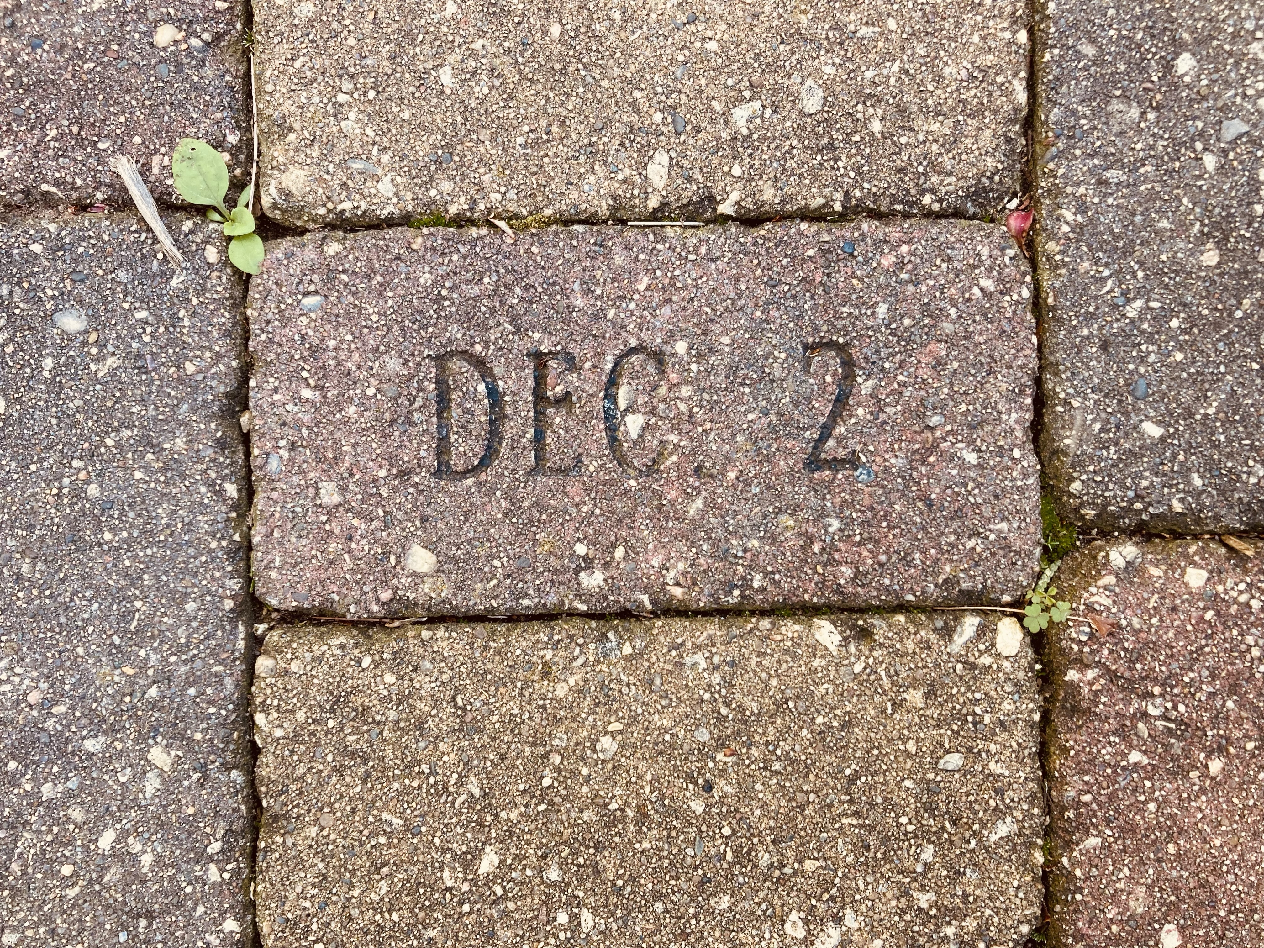 So it is a pretty lovely place. There’s a trail into the woods, but we instead explored the garden. It’s a circle built of bricks, with the days of the months on the center bricks, as well as different holidays throughout these months. There’s little buildings built as well, situated kind of at every season of the year. One kind of looked like a greenhouse, or where folks that work for the park do gardening…or smoke weed.
